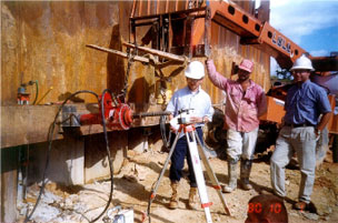 Prueba de carga en anclajes en suelo con mortero inyectado para el Tren Urbano en San Juan, PR. Carga de trabajo de los anclajes: 120 kips.