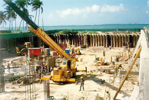 Dewatering and excavation designed by GeoConsult for 12'-deep excavation in sand with lower clay basement, San Juan, P.R.